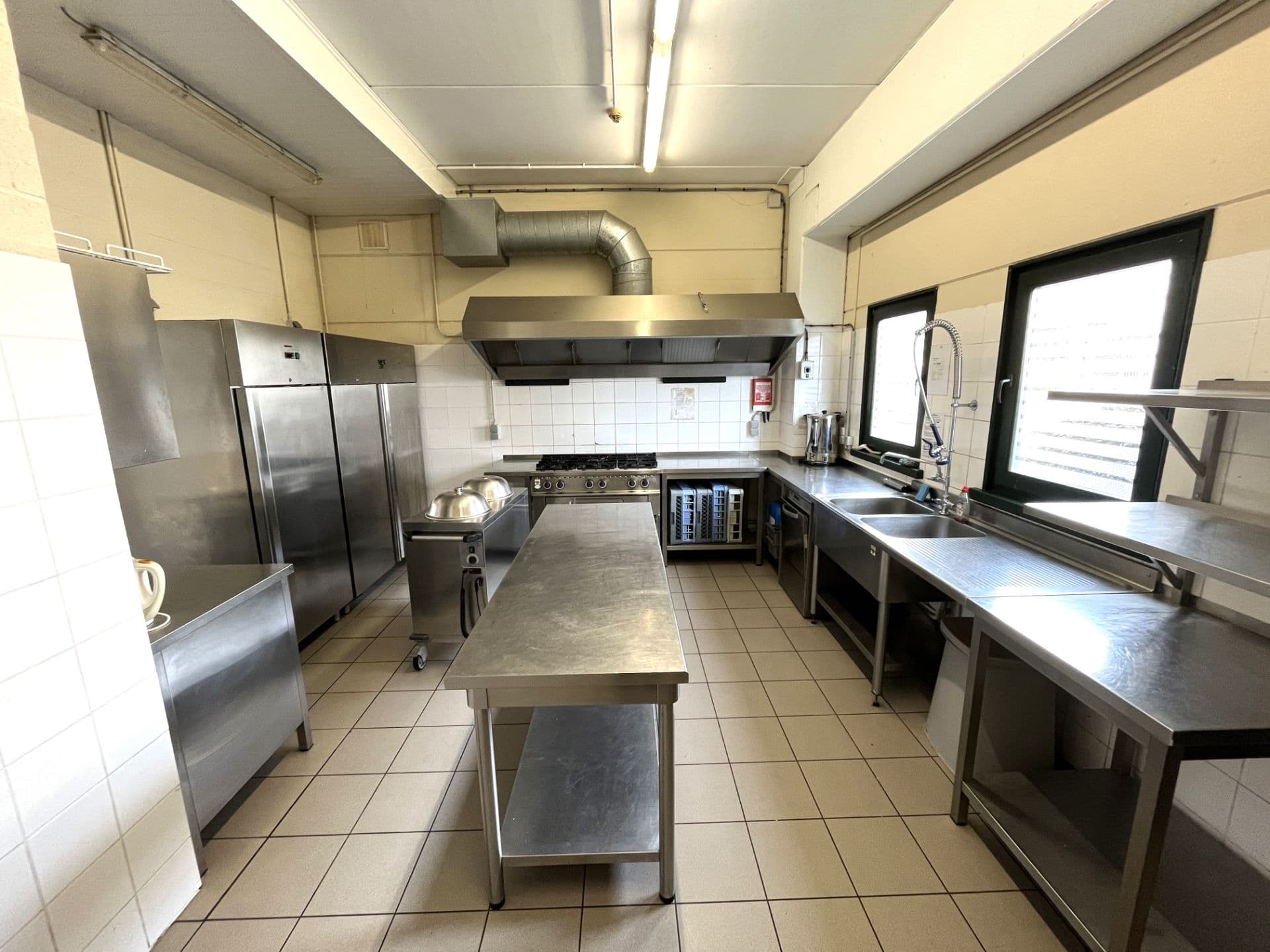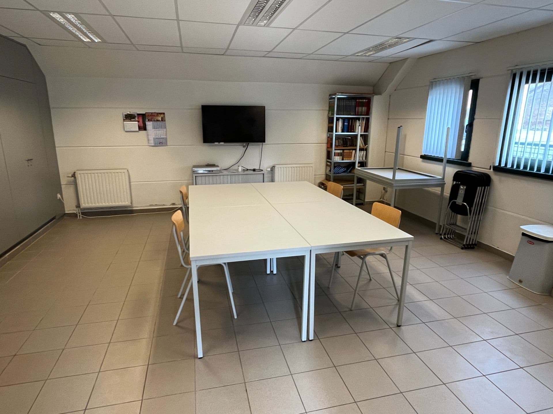 À l’étage, une salle pour les clubs sportifs avec un revêtement souple, deux vestiaires avec douches et des sanitaires.