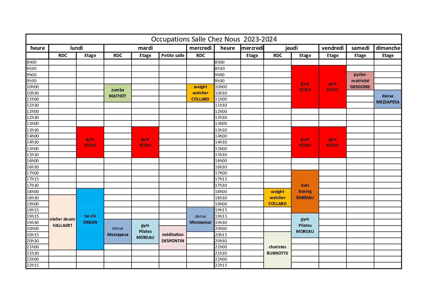 Cours collectifs hebdomadaires