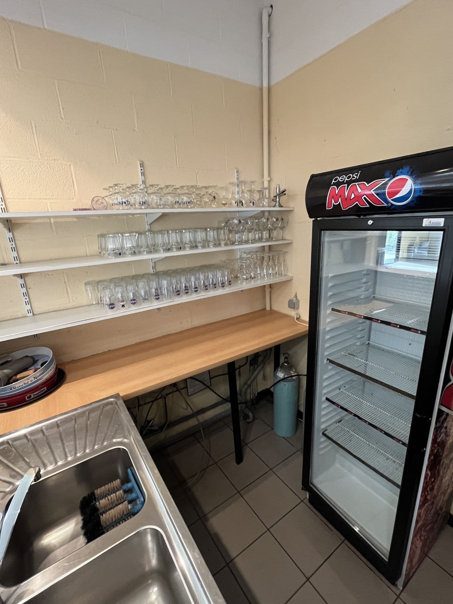 Une pièce attenante au bar sert de stockage de boissons livrées par notre brasseur.