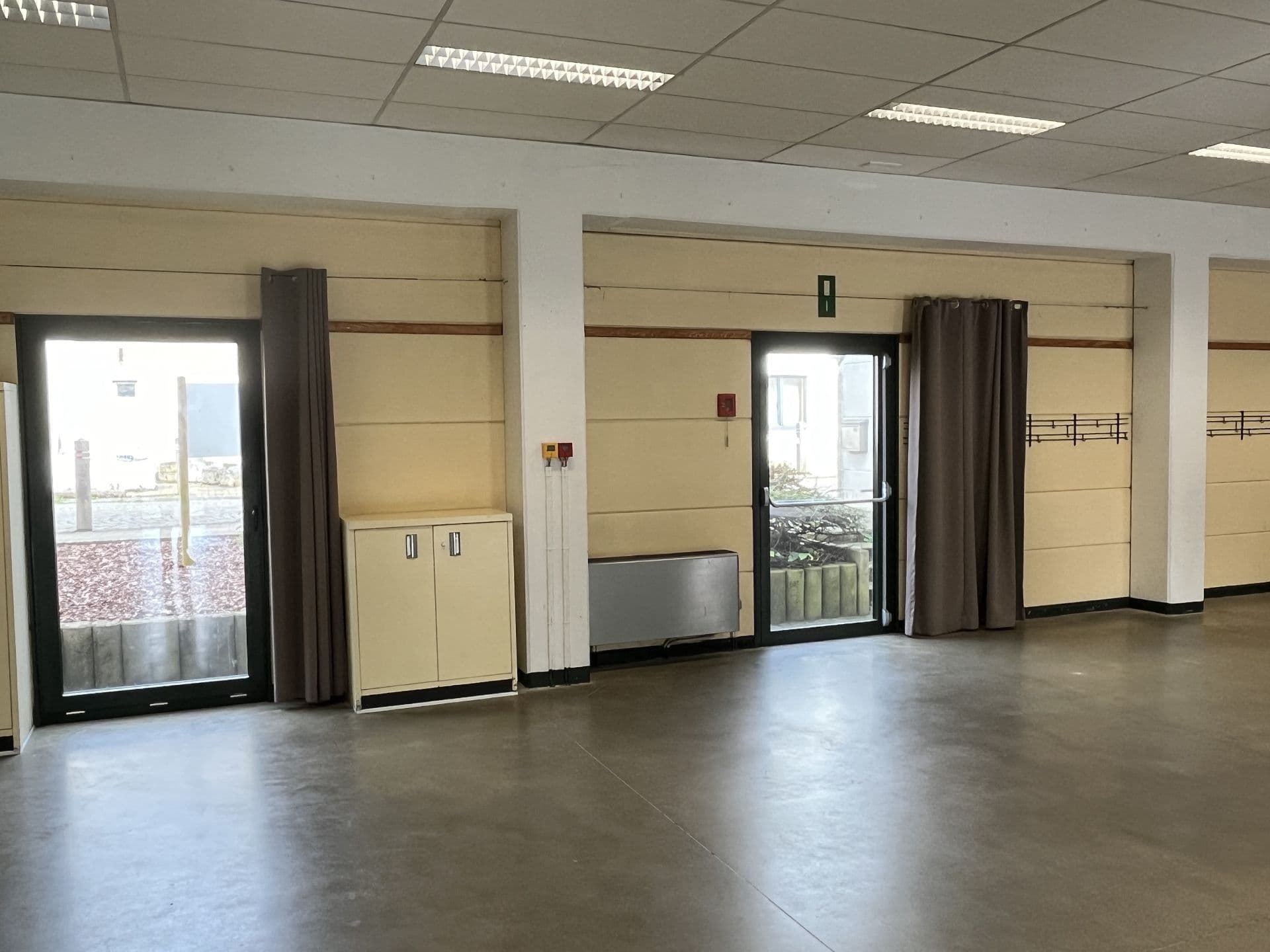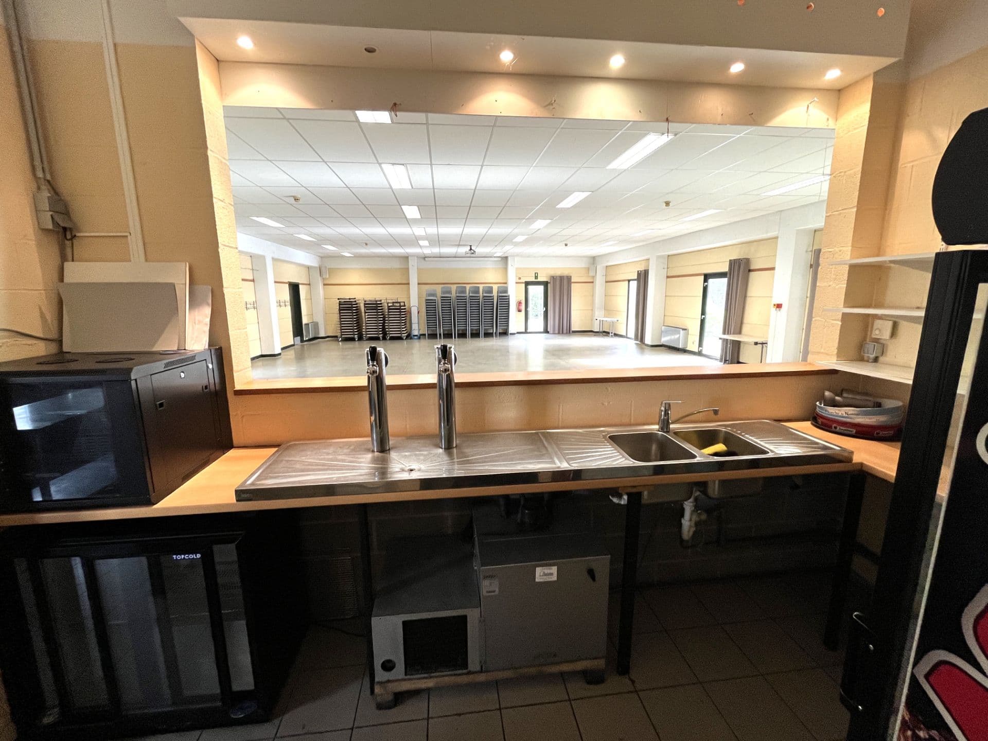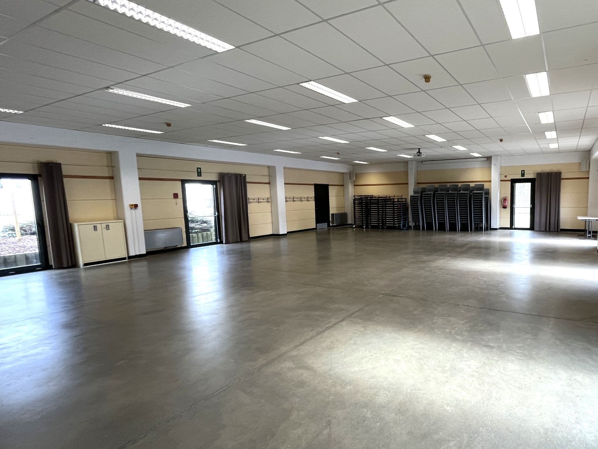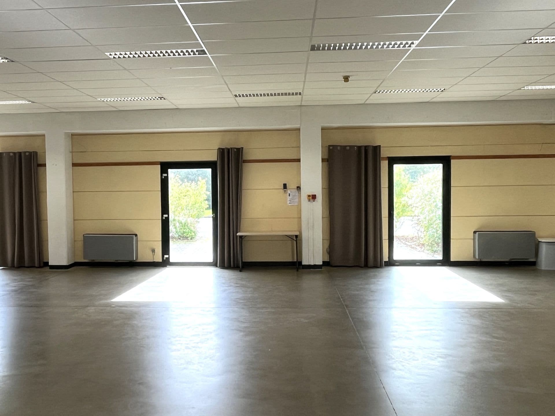 Le bâtiment principal avec une salle de réception pouvant accueillir 187 personnes et une salle de sports.