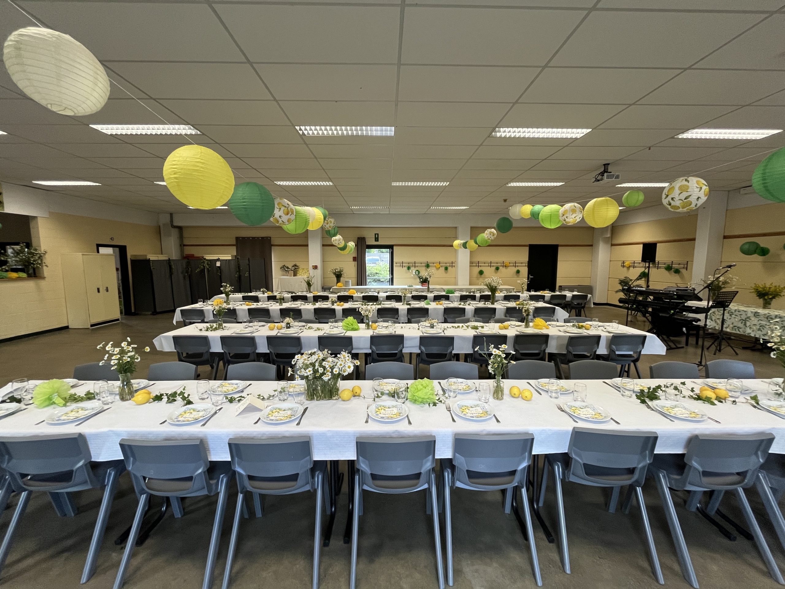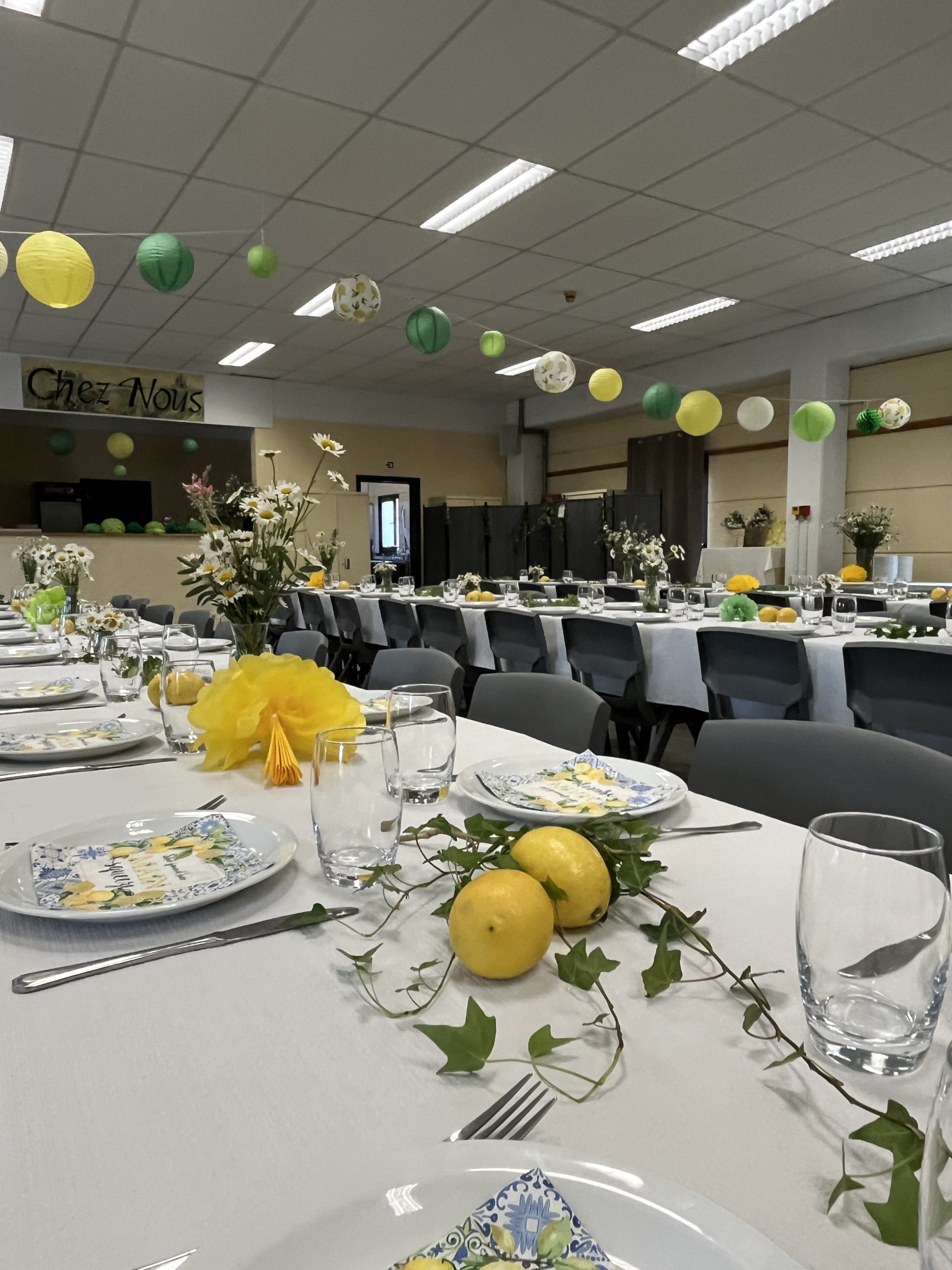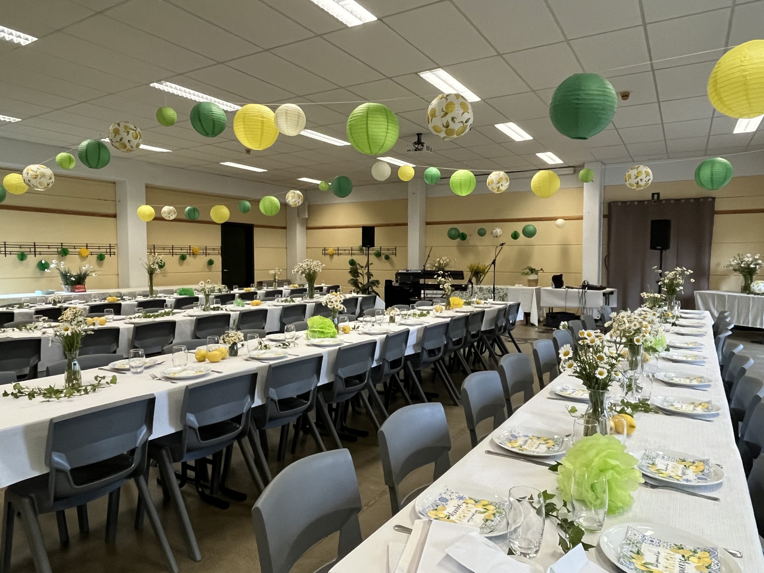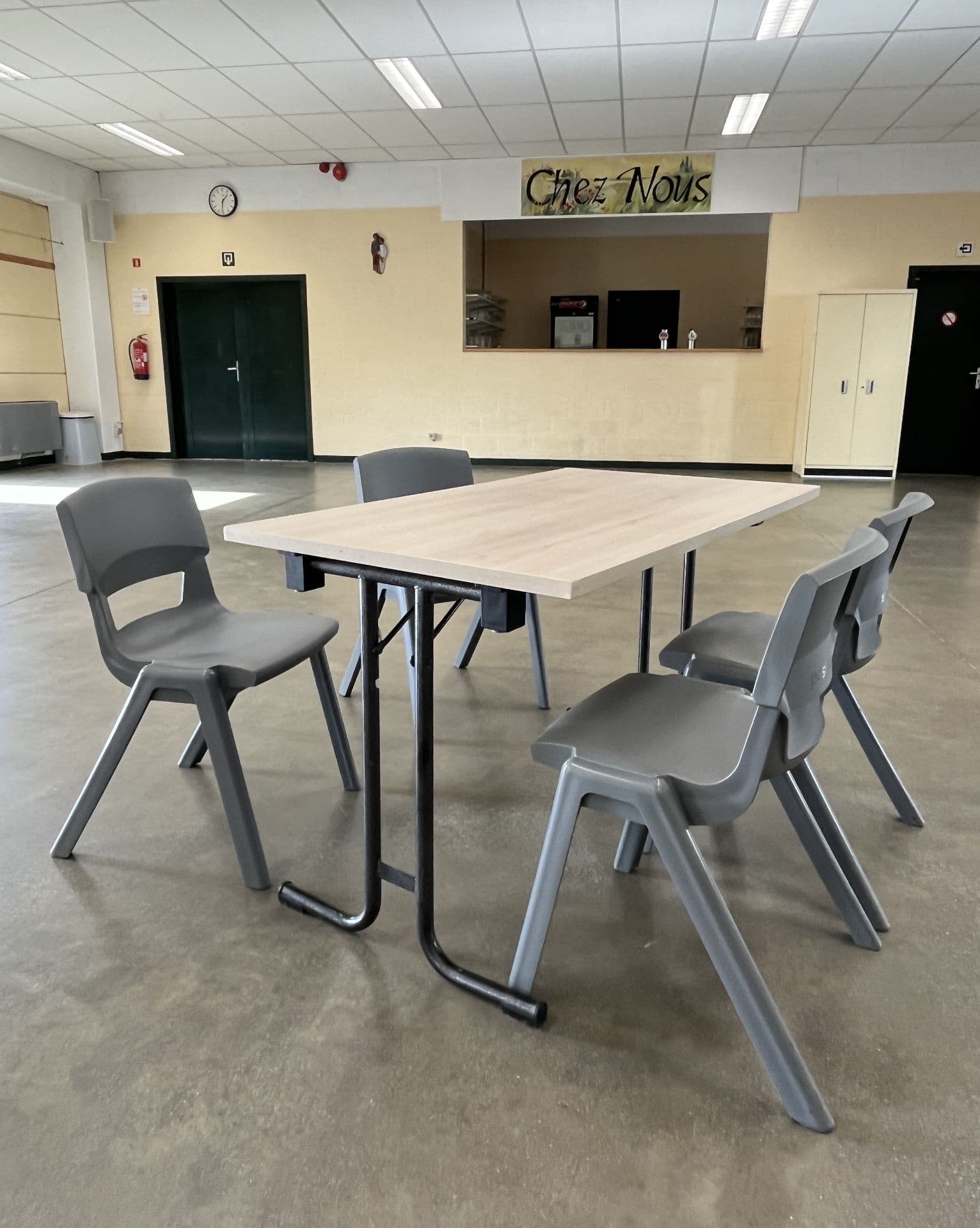 - 40 tables pliantes (1,20 m x 0,70 m) et 160 chaises.