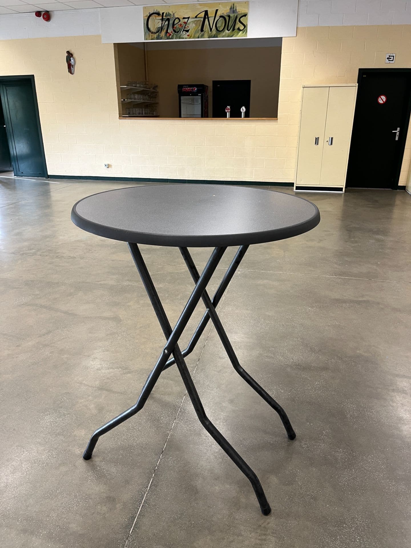 7 tables hautes (apéritif) sans « jupe » (diamètre 80 cm).
